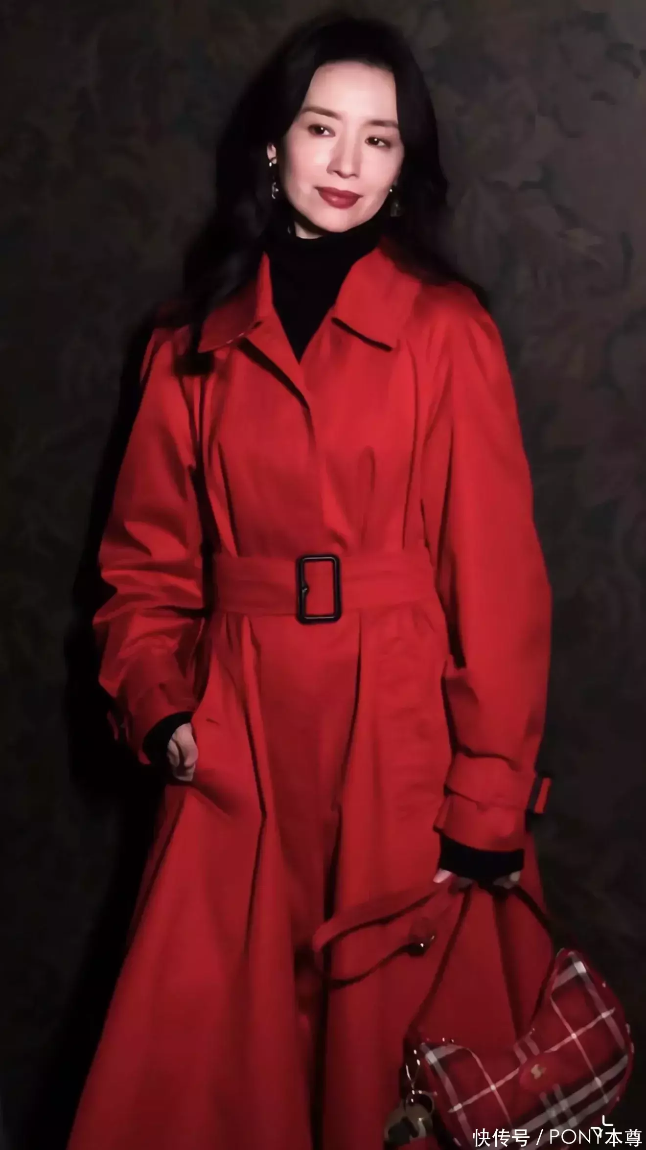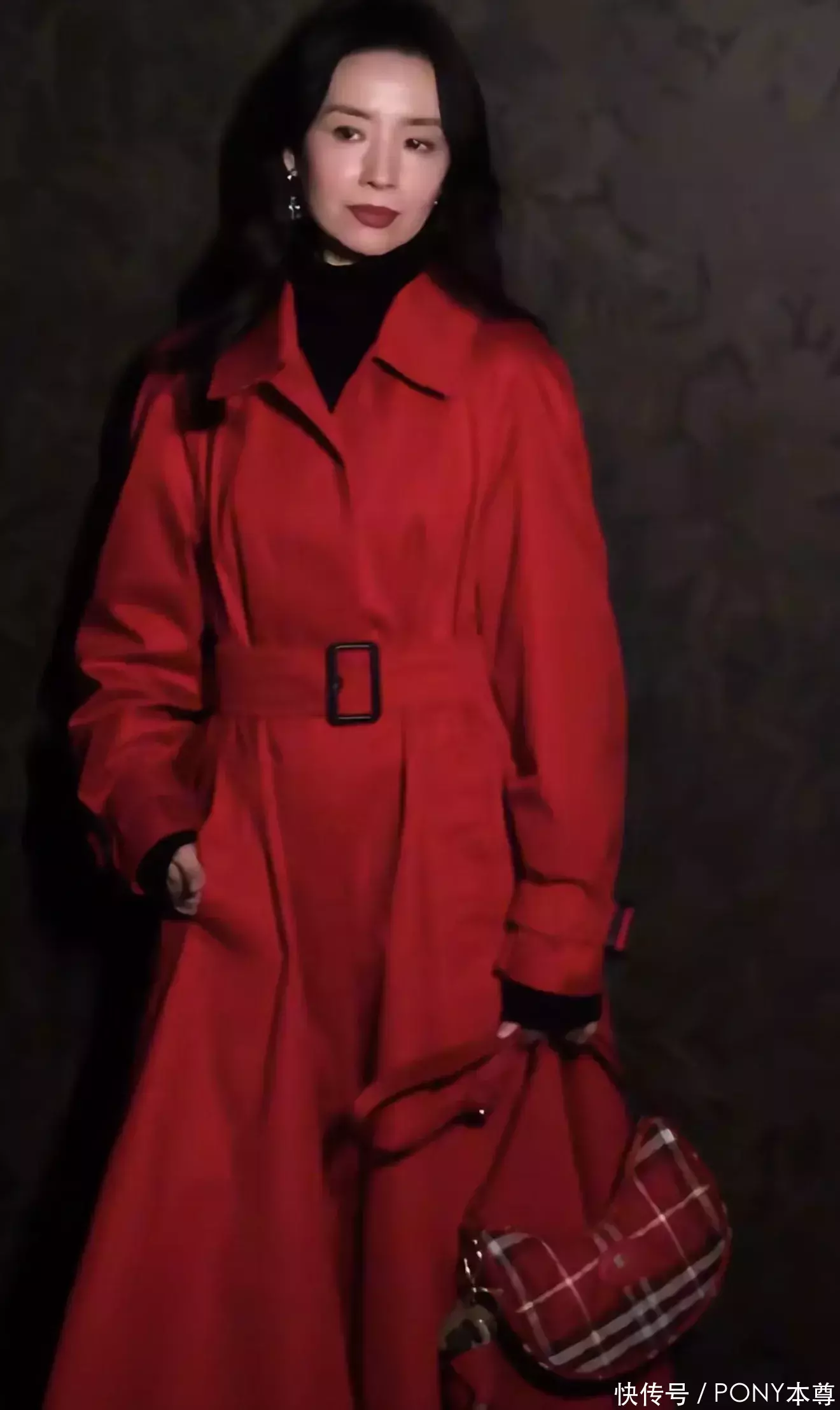 红黑搭配,是一种经典又耐看的色系搭配!董洁的这款红色风衣,符合年底节日氛围,喜庆又养眼!作为直播界的一姐,她经常在直播间分享各种时髦单品,大多数是以低饱和度的色系为主!